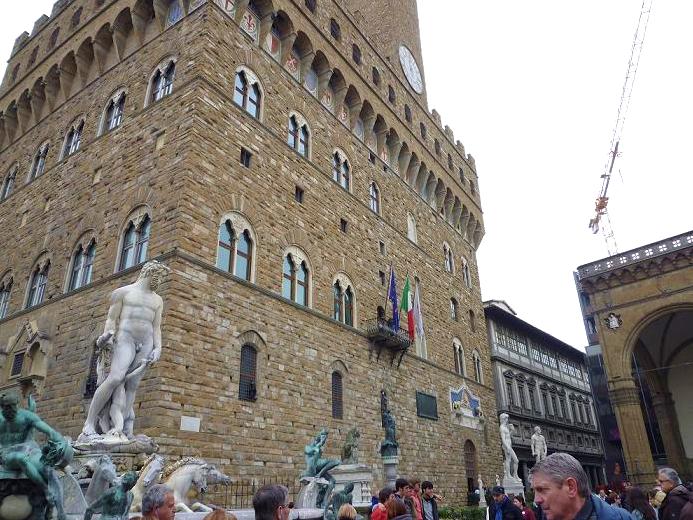 ドゥオモのある広場から南方向へ進むとシニョーリア広場がありますが、ここにネットゥーノの噴水があります。躍動感のある馬と男性の彫刻が素敵です。他にもダヴィデ像のレプリカなど、この広場にはたくさんの彫刻があります。