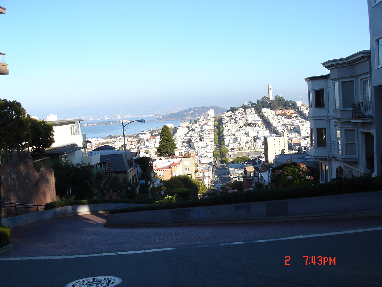 ケーブルカー一日乗車券を購入して、坂を行ったり来たり、途中、有名スポットで下車して観光しました。サンフランシスコの映画や、TVで紹介されるロンバードストリートは、両脇が花壇で、綺麗でした。くねくね道を造ってゆっくりしか走れないようにして、それが観光スポットになるとは、やはり、坂の街ならです。