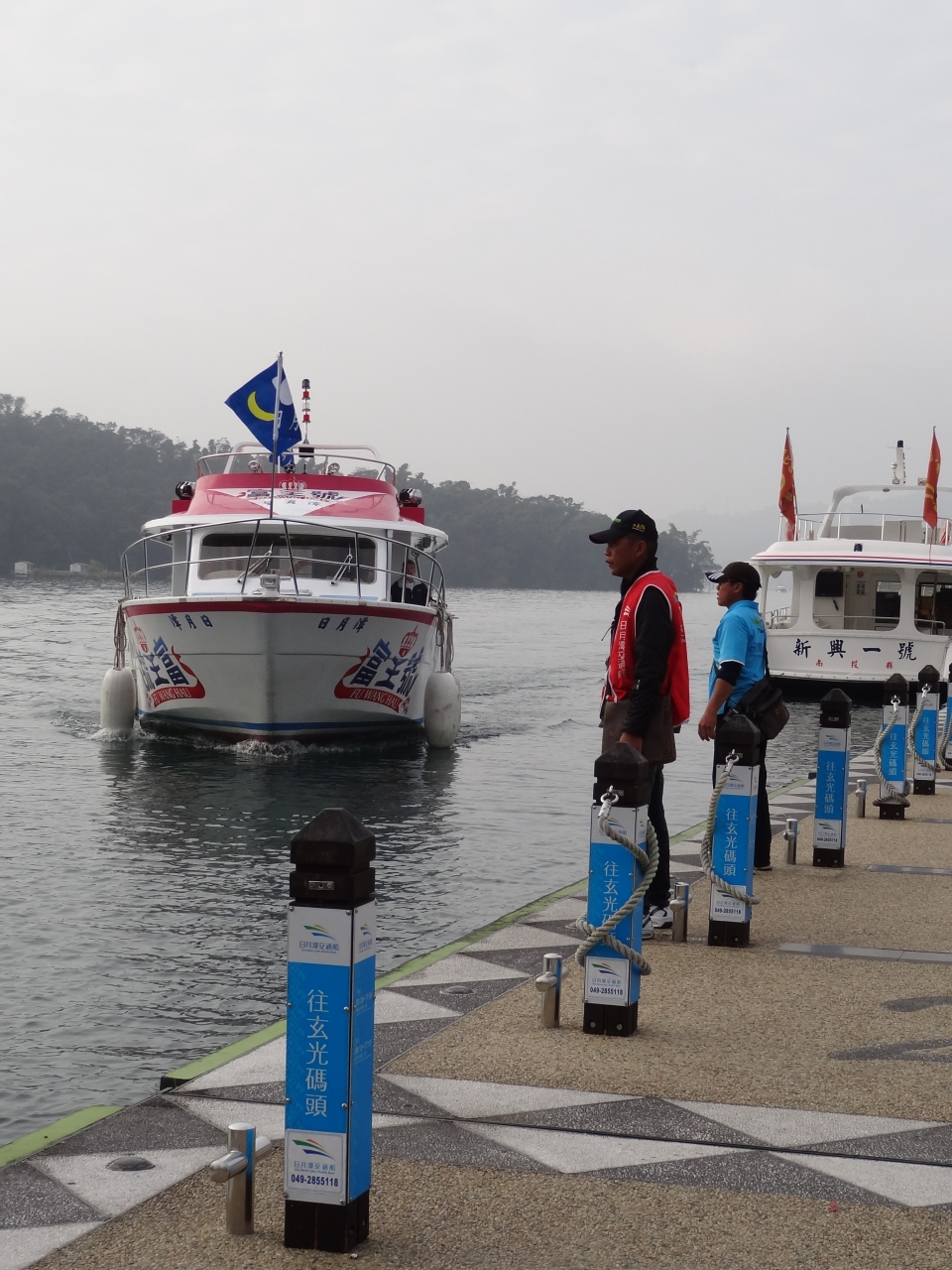 日月潭のシャトルボート。水社⇔伊達サオ、伊達サオ⇔玄光寺、玄光寺⇔水社の3区間運行。水上からみる日月潭・湖畔の景色も素晴らしく、単なる交通機関としてではなく楽しめます。爽快でした。