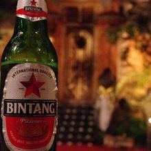 入口でチケットを買って中に入ると、ビールを売ってるおばちゃんがいます。
