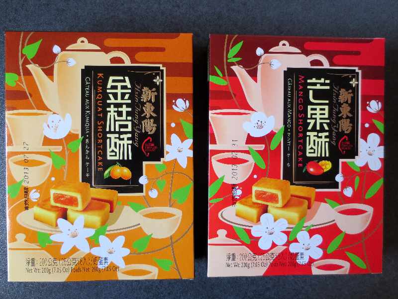 私が買ったのは4種類の味が4個づつ計16個入って220元の「フルーツ・ケーキ」詰合わせです。個人的には一番期待したマンゴーはそれほどマンゴーの風味がしませんでした。果物が高価なのでジャムに配合する量をケチったのか?。キンカンは柑橘系の香りが意外と合いました。定番のパイナップル味にもう一品としてはキンカンがお奨めです。グランベリーは個人的に嫌いなのでノーコメント。4種類出すならストロベリーにしてほしかった。