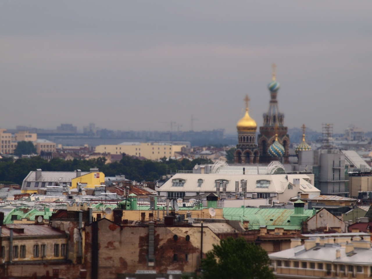 螺旋階段をえっちらおっちら自力で登っていって見るサンクトペテルブルグ市内は、ランドマークとなる建物が非常に発見しやすく、風景を眺めていて面白いです。