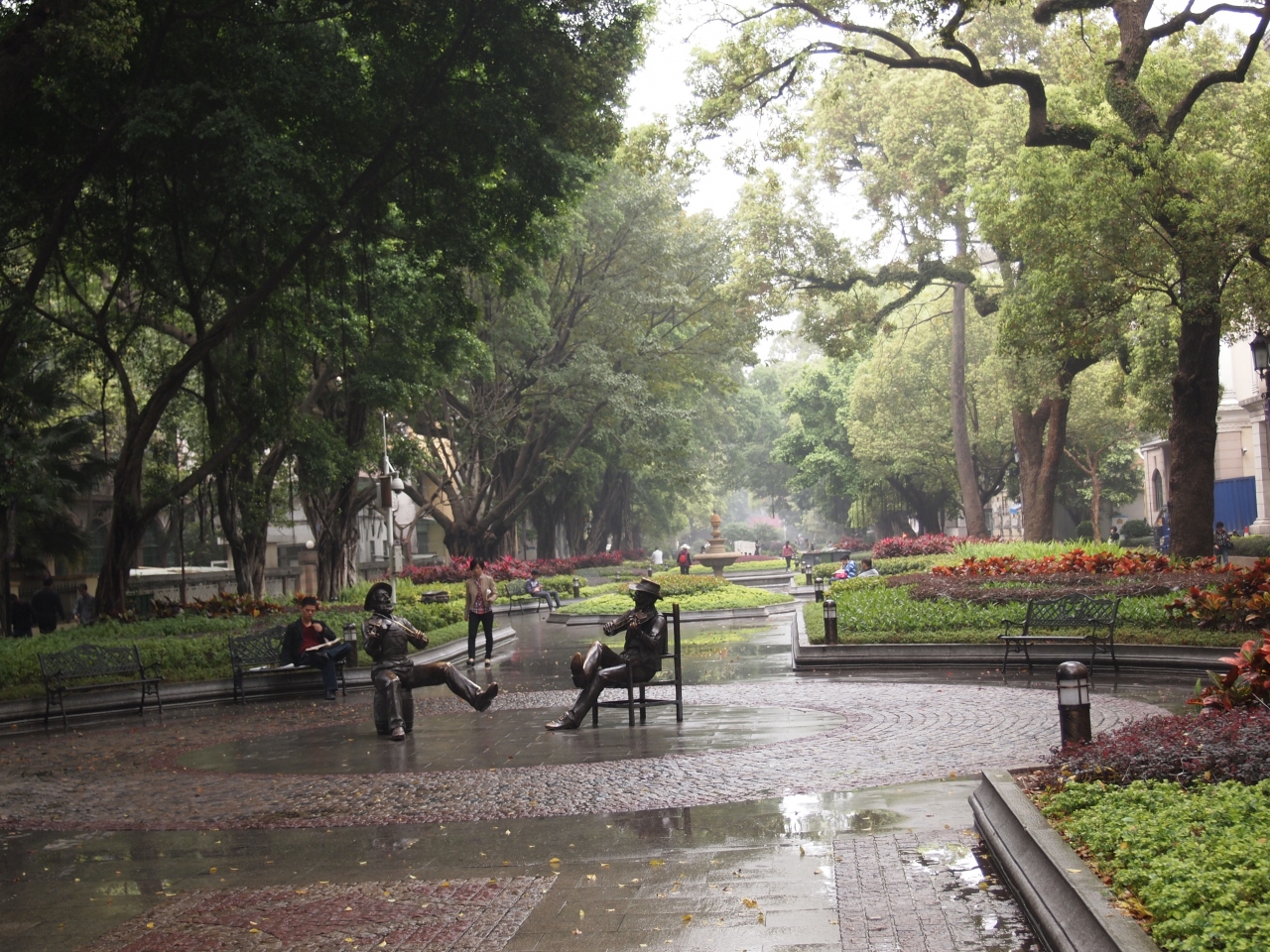 地下鉄黄沙駅のD出口を出て、目の前の大通りを歩道橋を超えて行けばすぐです。 歩道橋では、露店が大型の鳥の爪を売っていますが、全部同じに見えるのは気のせいでしょうか? 小さい運河を超えれば、そこは租界が広がり、世界が違ってきます。 この運河も昔はきれいだったんだと思いますが、現在は・・・。 公園のなかは、緑が多くなぜこのような世界をもっとできないの?と思わせます。