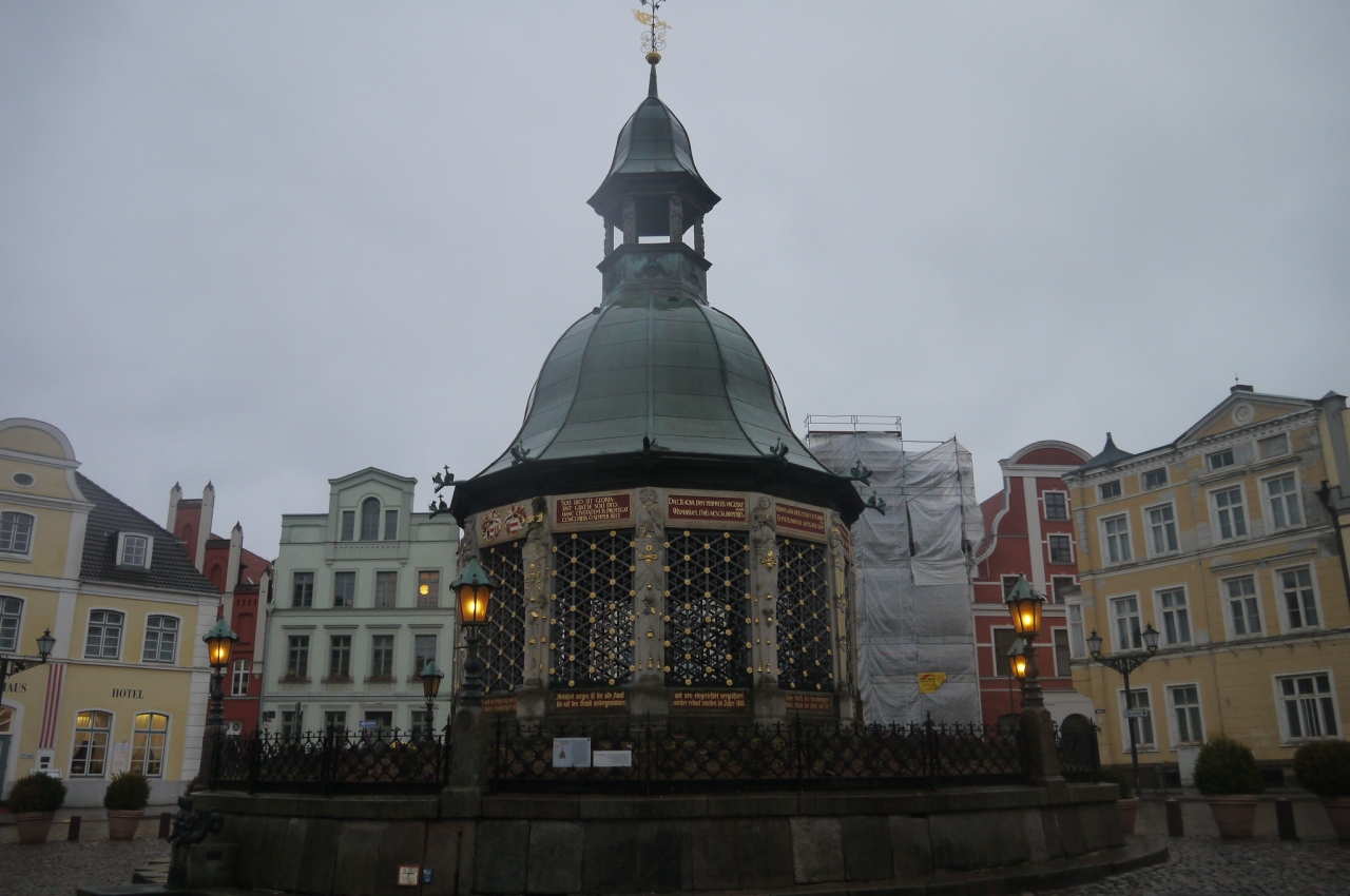 ヴィスマールの駅から歩いて10分程で到着するこのマルクト広場で目を惹くのはなんといっても広場に立つ変わった形の建物だと思います。