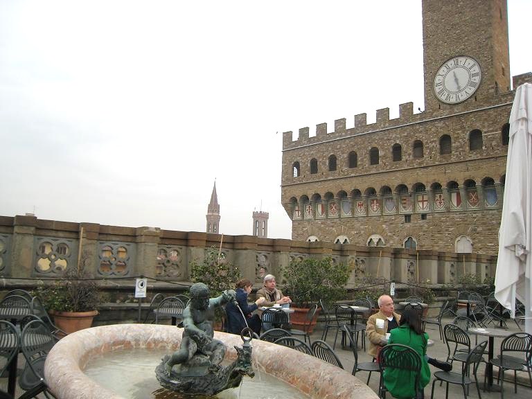 フィレンツェの中心部シニョリーア広場にヴェッキオ宮殿があります。現役の市役所でもあります。ダヴィデ像とエルコレ像の間に入口があります。ウフィッツィ美術館の屋上からヴェッキオ宮殿の時計塔を近くに見ることができます。