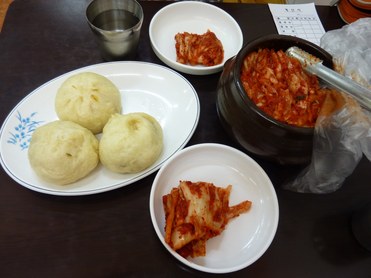 マンドゥは小ぶりの肉まん3つで2000W、具もぎっしりで皮も美味しいです。