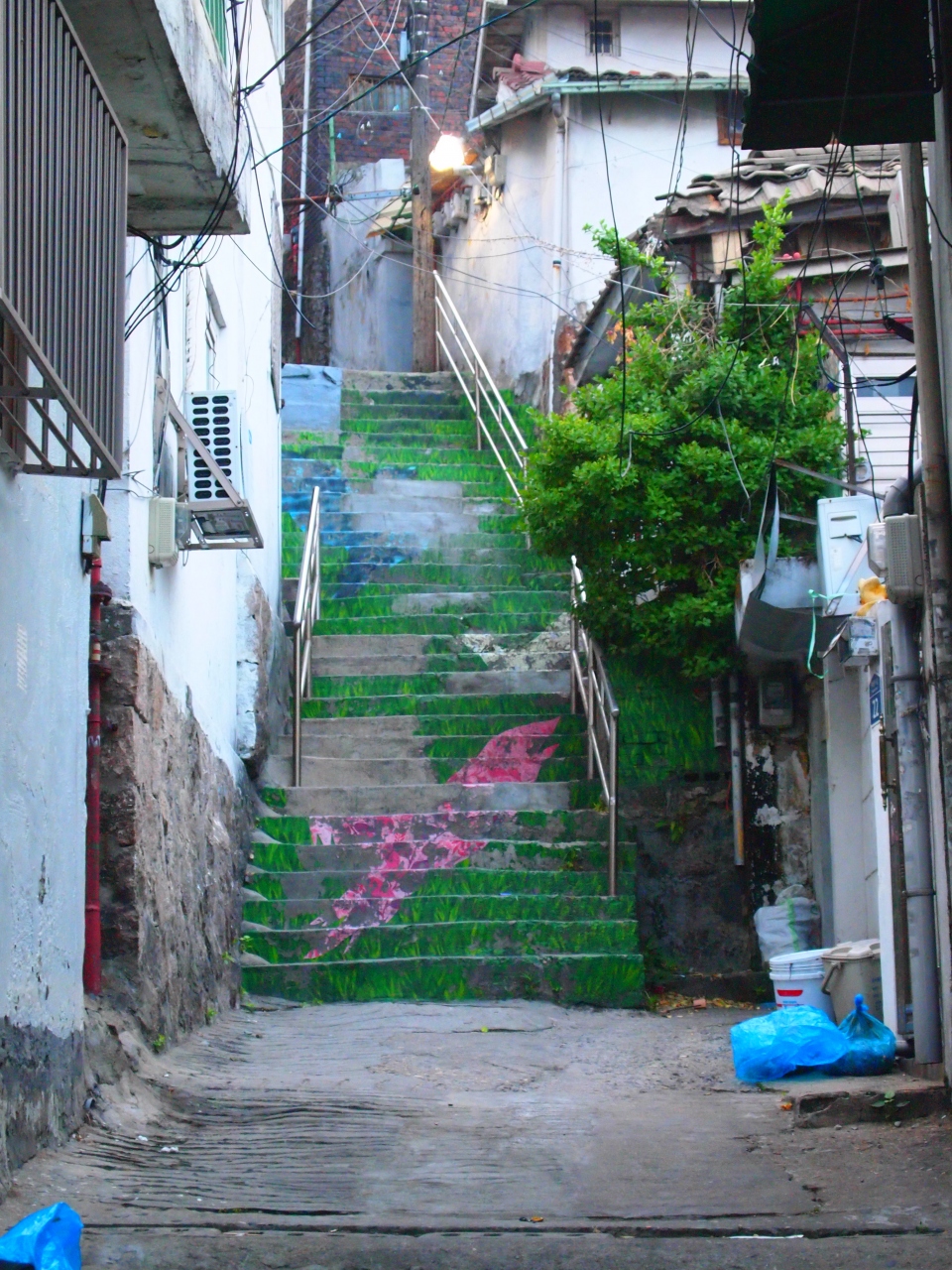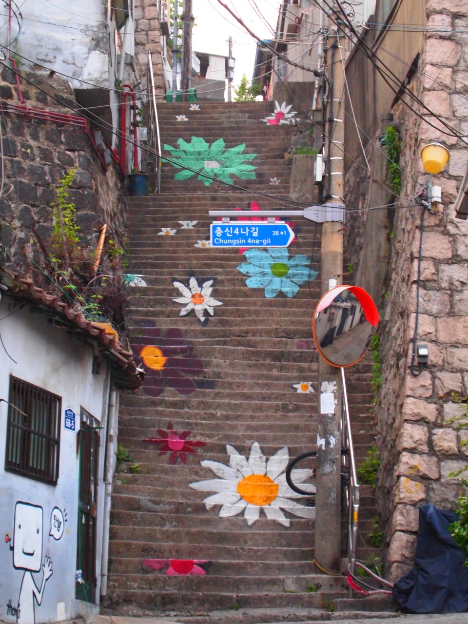 2012年6月のソウル旅行でいちばん見たかったのはこの路上美術館の花の絵が描かれた階段!