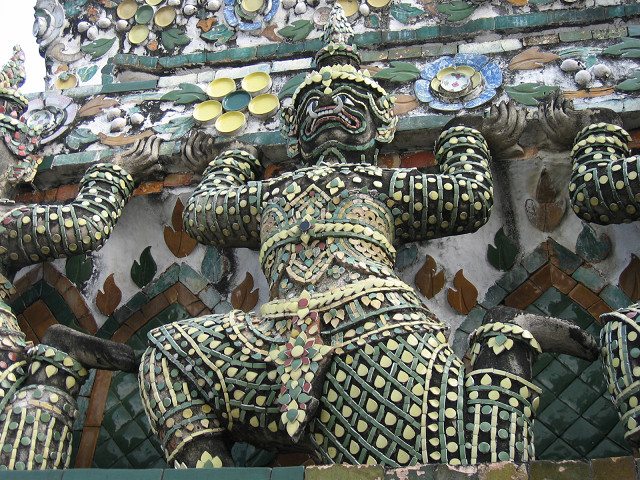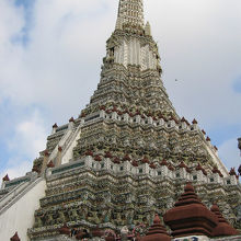 ワット・アルンは、鮮やかな陶器の破片が花模様を描いて埋めこまれている大仏塔です。 遠くからだとあまり良く分からないので、ぜひ近くで見てください。色とりどり陶器が無数に散りばめられており、一つのアートとしても楽しみると思います。