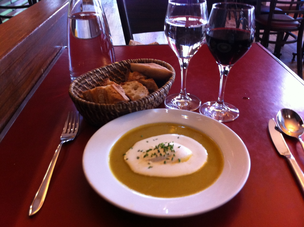 前菜+メイン+グラスワイン+カフェで13.5ユーロという、パリでは奇跡に近い格安ムニュを出すお店。東京・表参道に支店がありますが全くノリが違います。かなりカジュアルでサービスはリアルにフランススタイルです。腰の低い日本式サービスを望むならそれなりの対価を払わなくてはならないのがフランスです。