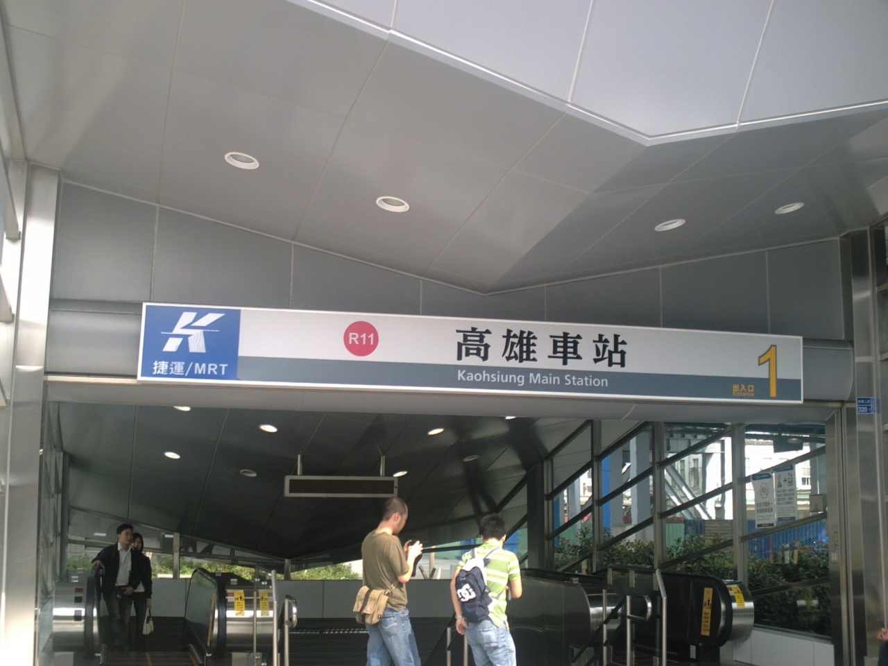 台湾の新幹線を利用して高雄へ行った場合、直接市内へはアクセスできず、左営という郊外の駅で降ります。その後、左営の駅から高雄の中心地となる高雄駅まではMRTやバス、タクシー等を利用することとなります。写真はMRTの高雄駅で鉄道の高雄駅に隣接しています。道向かいには長距離バス乗り場とチケット販売所があり、こちらは、1500円程度(運行会社によって差額有り)で台北まで連れて行ってくれます。但し、所要時間は5時間程度かかります。
