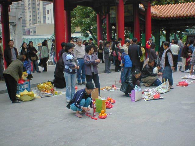 線香の煙の立ちこめる中、みなさん一心不乱にお参り。