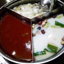 わたしと友人は、麻辣鍋と、お隣の現地の方おすすめの白い薬草系のスープ?を含めた3種類をチョイス。