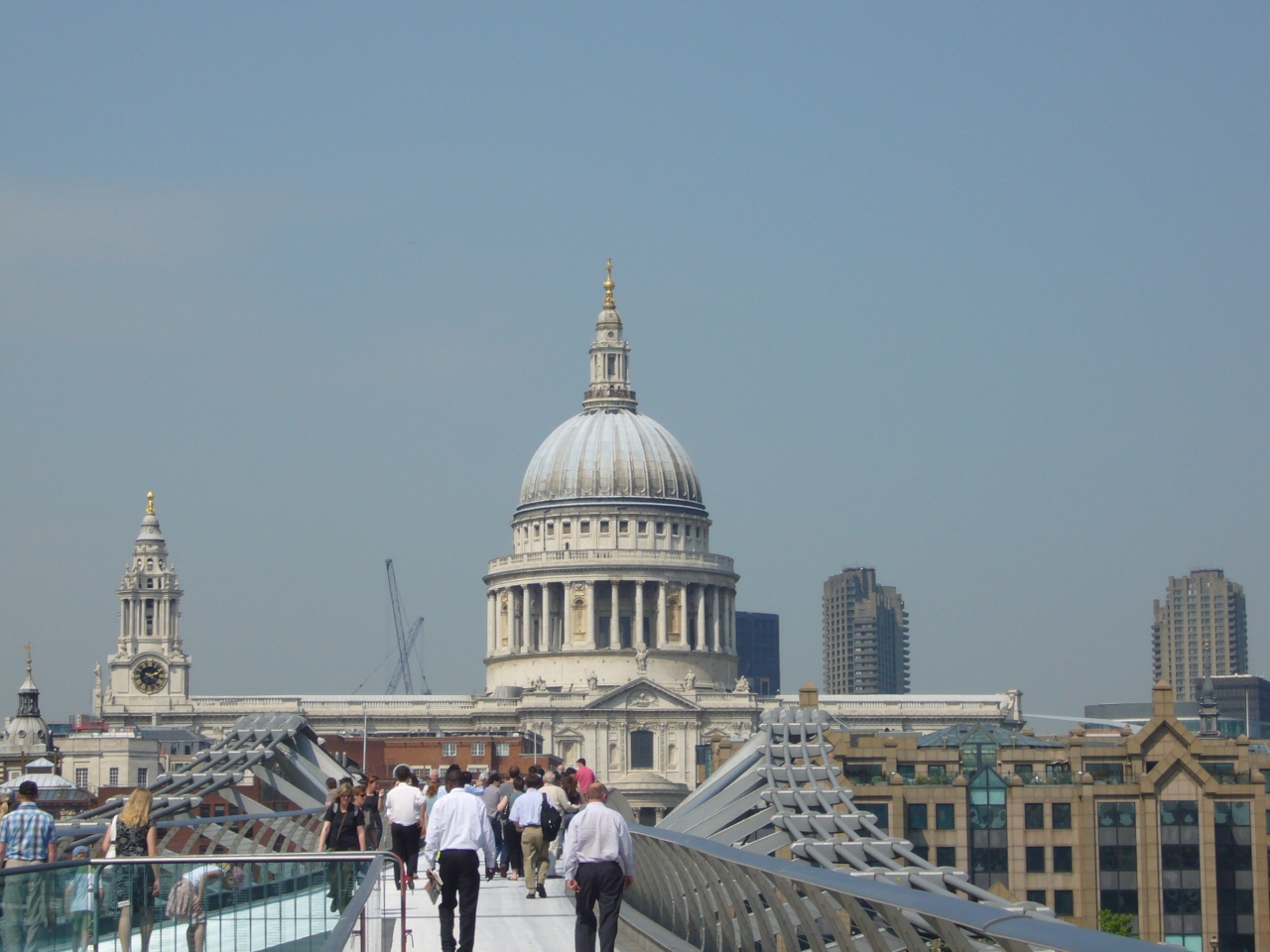 ホテルからバスに乗車、乗換え不要で、朝の喧騒、街並を楽しみながら、St Paul's Cathedralに到着。何も見えない地下鉄より楽しい。ここSt Paul's Cathedralは、イギリス国教会の大聖堂で、聖パウロに捧げられている。1666年のロンドン大火の後に建築家Sir Christopher Wrenにより再建されたバロック建築で、1710年完成したそうだ。建物の写真を撮ろうとしたが逆光と大きさに悩まされる。先端にあるドームの頂上の塔まで上ることが出来たが、エレベーターなどはなく、かなりきつい道のりとなりそうだったので断念。