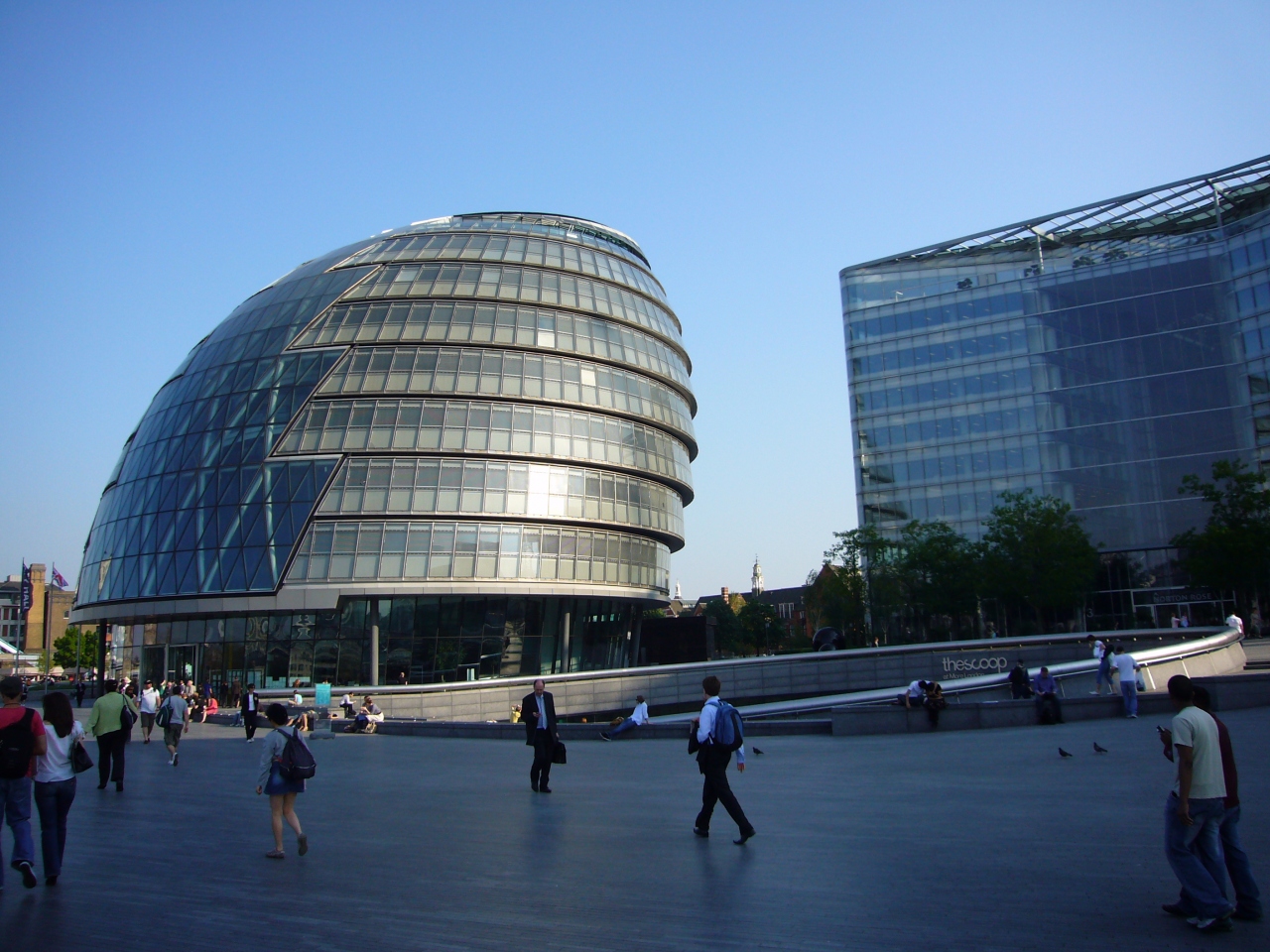 ロンドン最終日、テームズ川沿いを散歩していると、ロンドンアイのすぐ東側に奇妙な形をしている建築物を発見。テムズ川の対岸から見れば「丸い形の変わったビルだな。」くらいには思うのだが、近くで見ると斜めに傾いたようなデザインになっていおり、他に類例を見つけるのが難しいほど奇妙な形をしている建築物だと思う。最大の特徴はなんと言っても「螺旋階段」。どうやらこの螺旋階段、上部から下方に行くに従い末広がりになる構造で、さらに建物傾斜角度に沿って螺旋軸も少しずつ傾いているらしい。