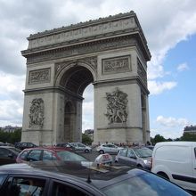 Av.des Champs Elyseesから、Arc de Triomphe de l'Etoileに車道を横切り向かおうとしたが交通量が多く奥方からの規制で断念し、延々と地下道を回った。この凱旋門は、パリの象徴的な建造物の一つで、単に凱旋門と言えばこのArc de Triomphe de l'Etoileを指すことも多く、世界有数の観光名所。この凱旋門を中心に、Av.des Champs Elyseesを始め、12本の通りが放射状に延びており、その形が地図上で光り輝く「星=étoile」のように見えるので、この広場は「星の広場(エトワール広場) la place de l'Etoile」と呼ばれているらしい。アウステルリッツの戦いに勝利した記念に1806年、ナポレオン・ボナパルトの命によって建設が始まり、1836年に完成。ナポレオンは凱旋門が完成する前に既に死去しており、彼がこの門をくぐったのは1840年にパリに改葬された時。間近で見るとかなり大きい。