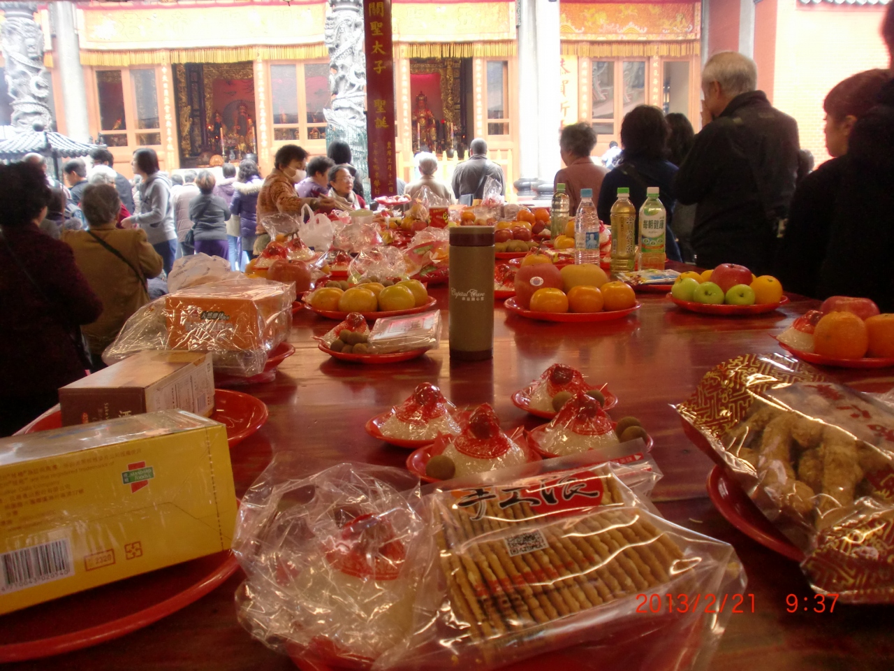 市内観光でガイドさんとツアーバスで行きました。にぎやかな街の中にあったので驚きました。中は地元の方と観光客が半々ぐらいだったでしょうか。お供え物がたくさんあり、地元の方が熱心にお参りしていました。ガイドさんの説明を聞き、私達もお参りさせてもらいましたが、台湾人の信仰の場に観光客が大勢で足を踏み入れるのはいかがなものかっと少し思いながら、お参りさせてもらいました。台湾は観光の国なので、地元の方達もそれほど気を悪くしていないのかな。