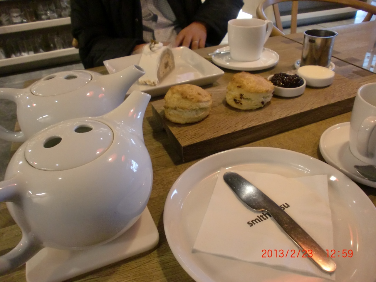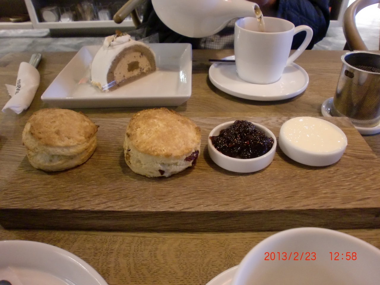 土曜日の昼前に訪問しました。帰国便が夕方だったため時間が空いてしまい、前から行きたいと思っていたので、急きょネットで検索し、店名と住所をメモりタクシーの運転手に見せたところ店の前で降ろしていただけました。1階にはお客様もいなくて1階のテーブル席にすわり、お茶とスコーンのセットを注文しました。お茶の注文の際に出してくれる茶葉の見本の瓶を写真をとっても良いか聞いたところOKだったので、写真撮っても良いお店だと思っていましたが、店内を撮影しようとしたところ止められたので、自分の注文したテーブル上は撮影OKだが、店内には食器等も販売しているので店内や商品の撮影はNGのようです。スコーンは外はカリカリで、中まで温められていてとても美味しかったです。定員の若い女性も感じが良かったです。2階スペースも広そうなので再訪したいです。食後に商品を見て、夫が水割り用のグラスが気に入ったようで購入しました。とても薄いガラスでできていてすごく軽いのです。プチプチで包んで紙袋に入れてくれました。帰国時、トランクに入れるのが心配だったので、紙袋ごと手に持って空港に行ったところ、私の不注意で床に落としてしまい割れてしまいました。残念でなりません…