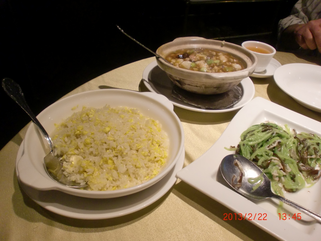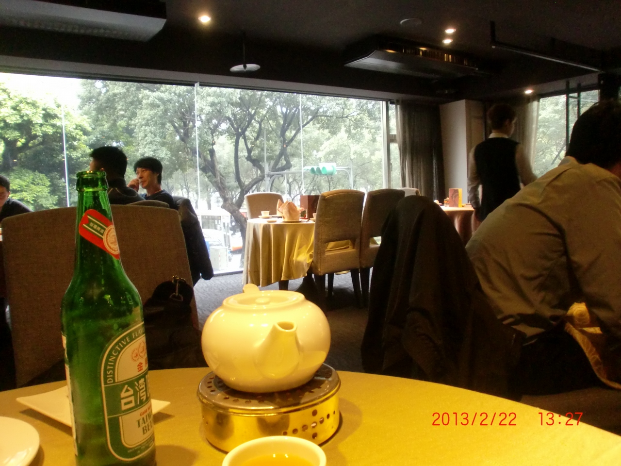 クチコミを読んでランチに行こうと決めていました。プリントアウトしたものをホテルフロントへ見せて、訪問日の前々日に12時で予約をしていただきました。通された席は窓側ではなかったものの、窓がある大きなフロアーの入口付近の大きな丸いテーブルでした。かなりテーブル数も多いので、着席した席によって印象も異なると思います。点心3種とヘチマの炒め物、あんかけチャーハン、カスタード饅頭とビール1本で190元でした。メニューを見た限りでは合計金額が190元に届かないので、たぶんサービス料などが加算されたのでしょう。注文したものは全て美味しくて2人で満腹になる量でした。点心は全て3個で提供されるので、3人で行くとちょうどよいかもしれません。全て食事が終わった後、カスタード饅頭が出てくるまでとても長く待たされました。日本人客の対応は日本語の話せる年配男性がしているようで注文も支払いもその方が担当でした。カスタード饅頭を催促したくても、その男性が忙しそうで近くにこないため声をかけられず、それ以外のスタッフは気にも留めてくれず知らんぷりするし。その1品がなかなか出てこなかった事以外は満足でした。トイレもきれいでした。