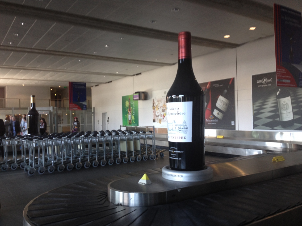 預け荷物のターンテーブルにボルドーワインの大ボトルがあって、殺風景な空港の中でボルドーに来たんだなっていうことが実感できます。