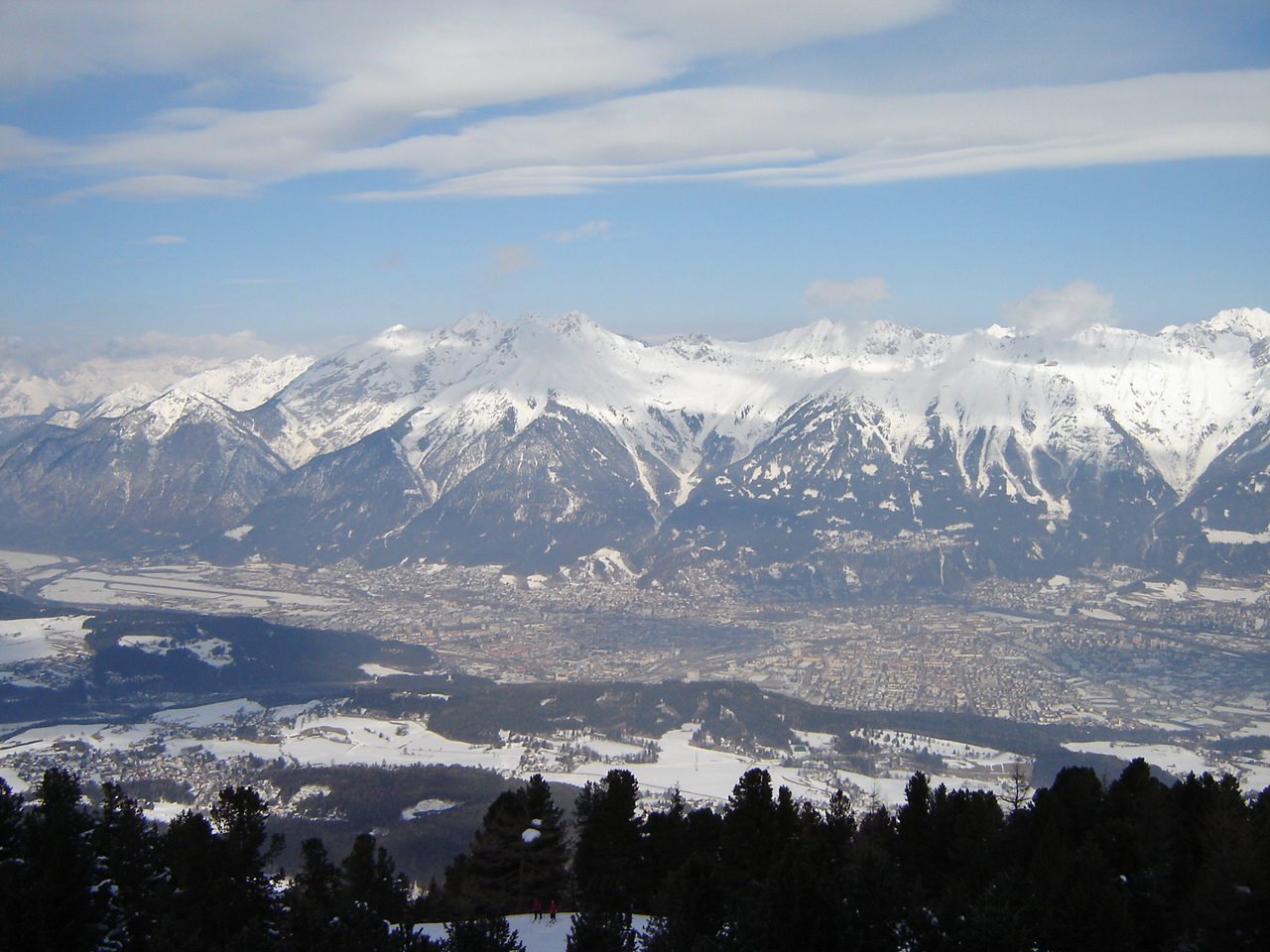 ロープウェイに乗ると周りはスキー客だらけで疎外感満載でしたが、ロープウェイを降りるとアルプスの山々とインスブルックの街を見渡すことが出来ました。