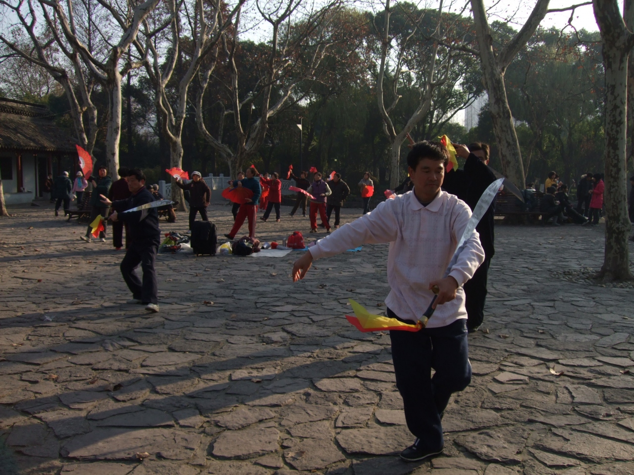 広い公園の中ではご老人を中心に、太極拳の他、ダンスや書道、剣術など様々な芸術を楽しんでいました。