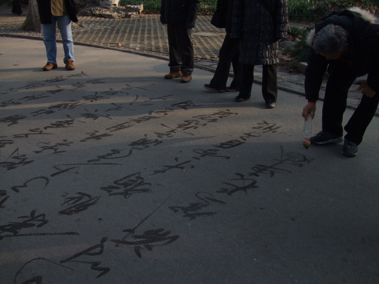 特に書道をしている人は、乾いたコンクリートに水で文字を書いてみんなに達筆を見せている感じ(笑)確かに達筆で素晴らしい。