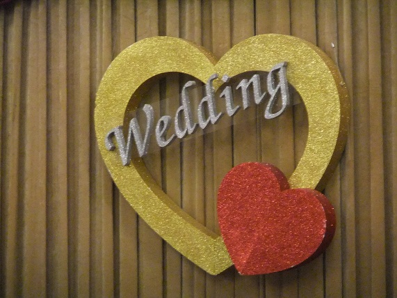 壁には大きな「Wedding」の文字と♡マークが