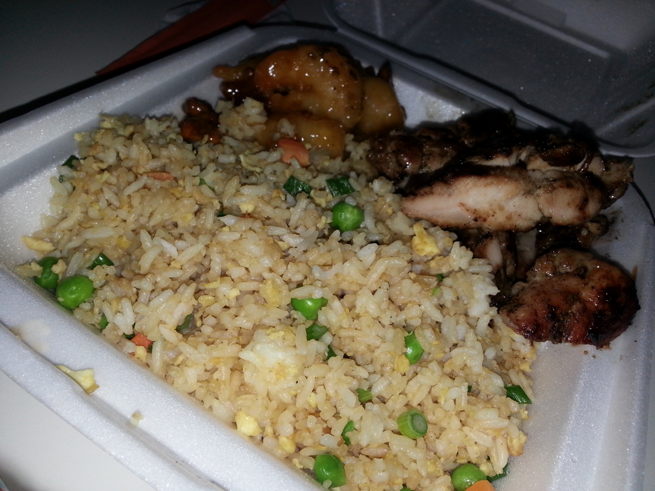 ショッピングに疲れて、ホテルの部屋でゆっくり過ごしたい時にロイヤルハワイアンセンター内で買えるため便利ですね。プレートのものにしましたが、結構なボリュームです!プレートはチャーハンか焼きそばをまず選んで、後は好きなもの3種類選べばOKです!