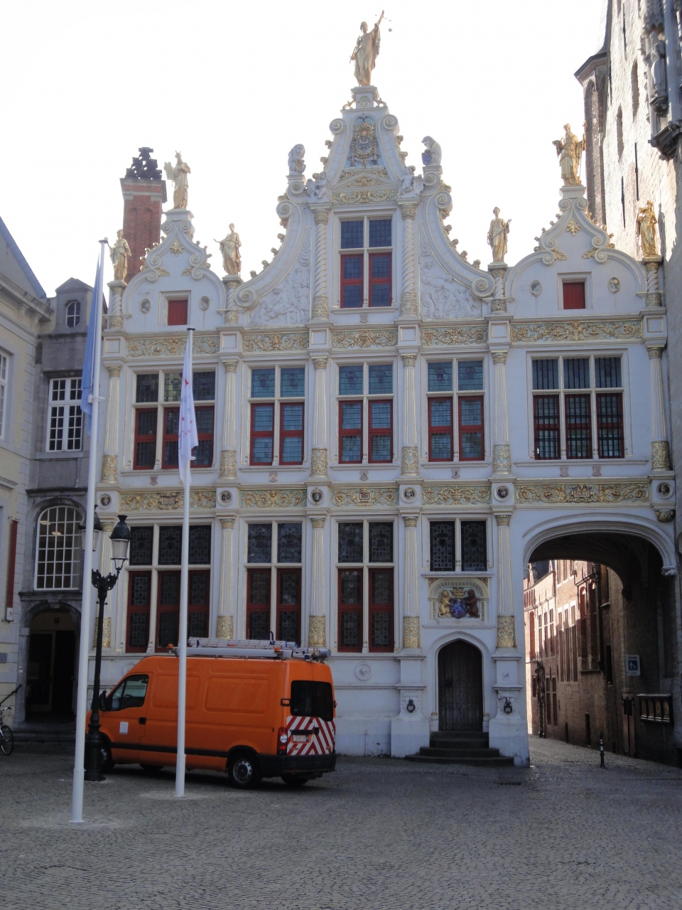 Stadhuis の東隣にあるOude Griffie: Het Brugse Vrije(旧古文書館:自由ブルージュ博物館)に入った。ここは、16世紀に街の評議員のためのオフィスを兼ねた施設として建てられたルネッサンス様式の建物で、「ルネッサンスホール」とも呼ばれている。評議員室に設置されている、精緻な木のレリーフが彫り込まれた「カール5世の暖炉」は、歴史的な意味も深く見応えがあった(写真はNG)。また、受付のおばあちゃんが、とてもチャーミングだったことが印象的。市庁舎とこの博物館とセットで €2。
