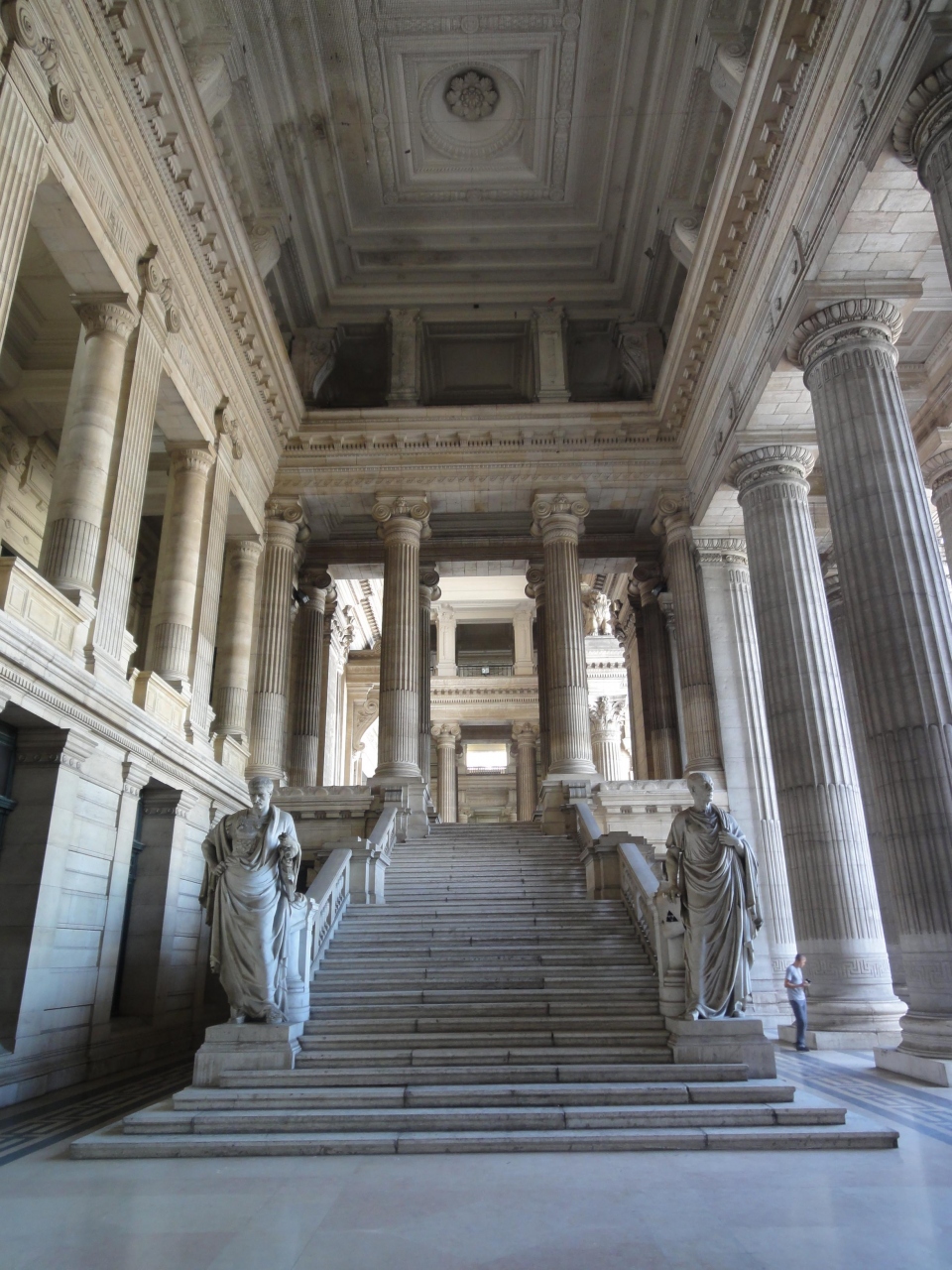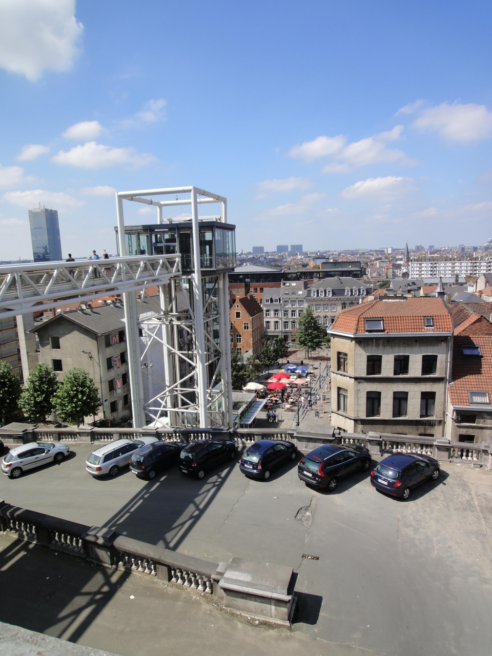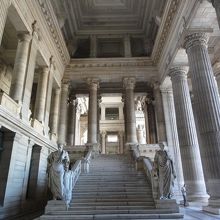 昨日、一昨日と下の列車の窓からも見えたほど、巨大建造物。入口を入ると神殿のような威厳があり、1階ロビーの広い部屋では裁判官のような服装の人と相談者らしき人があちこちのデスクで会話中。建物内には色々のモニュメントがあった。しかし、ここも工事中だったのは残念。また前の広場の端には、TVでも紹介されていた旧市街と新市街を結ぶエレベーターがあった。