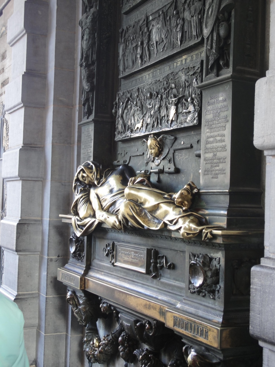 このLa Statue d'Everard 't Serclaes(セルクラースの像)は、グランプラス広場の「星の館」の一角にあった。セルクラースとは、「ブラバン公と敵対するフランドル伯の軍隊を町から追払ったものの、30年後、何者かに待伏せにあい絶命し、亡骸がこの家に運込まれた。」というお話。セルクラースの像に触れると幸せになれると書いてあったので、足のあたりをスリスリと・・・触ってきたが、正しくは、足下の「犬の頭」を撫でると幸せになれるという言い伝えだそうだ。残念。
