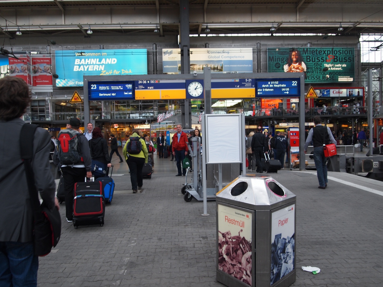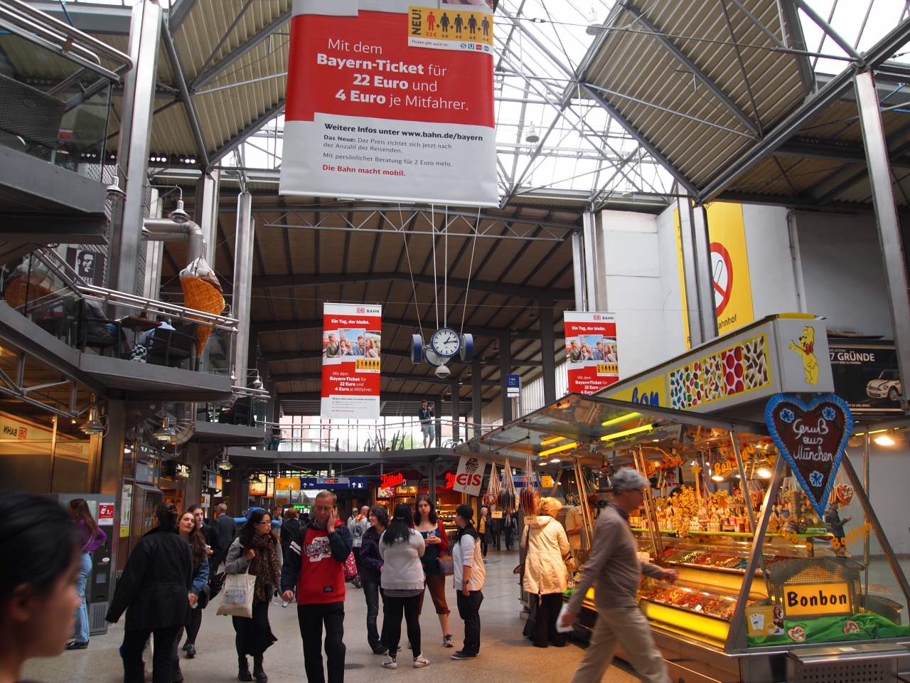 さすがドイツ第三の都市ミュンヘン、ロマンチック街道沿いで数日間見てきた駅とは比べ物にならないくらい駅構内が賑やかです。駅構内には軽食スタンドやキオスクが点在し、小腹がすいても困りません。