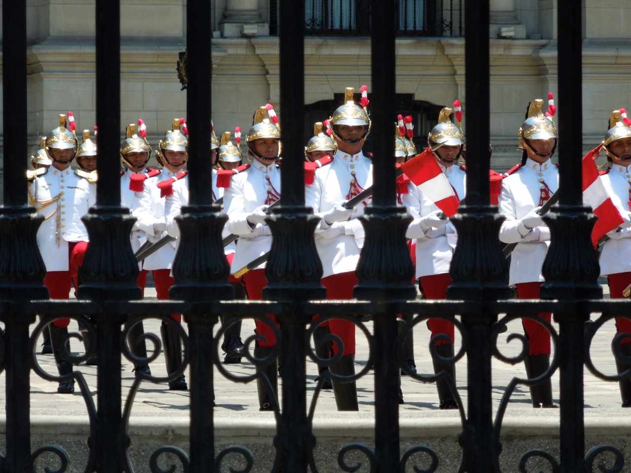 正午には、アルマス広場に面したペルー政庁で衛兵交代も見ることができます。