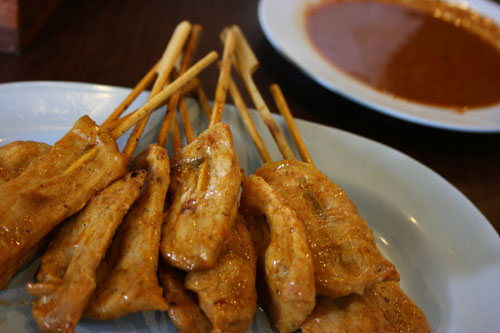 まずは、ムーサテ(豚肉の串焼きピーナッツソース)が到着♪