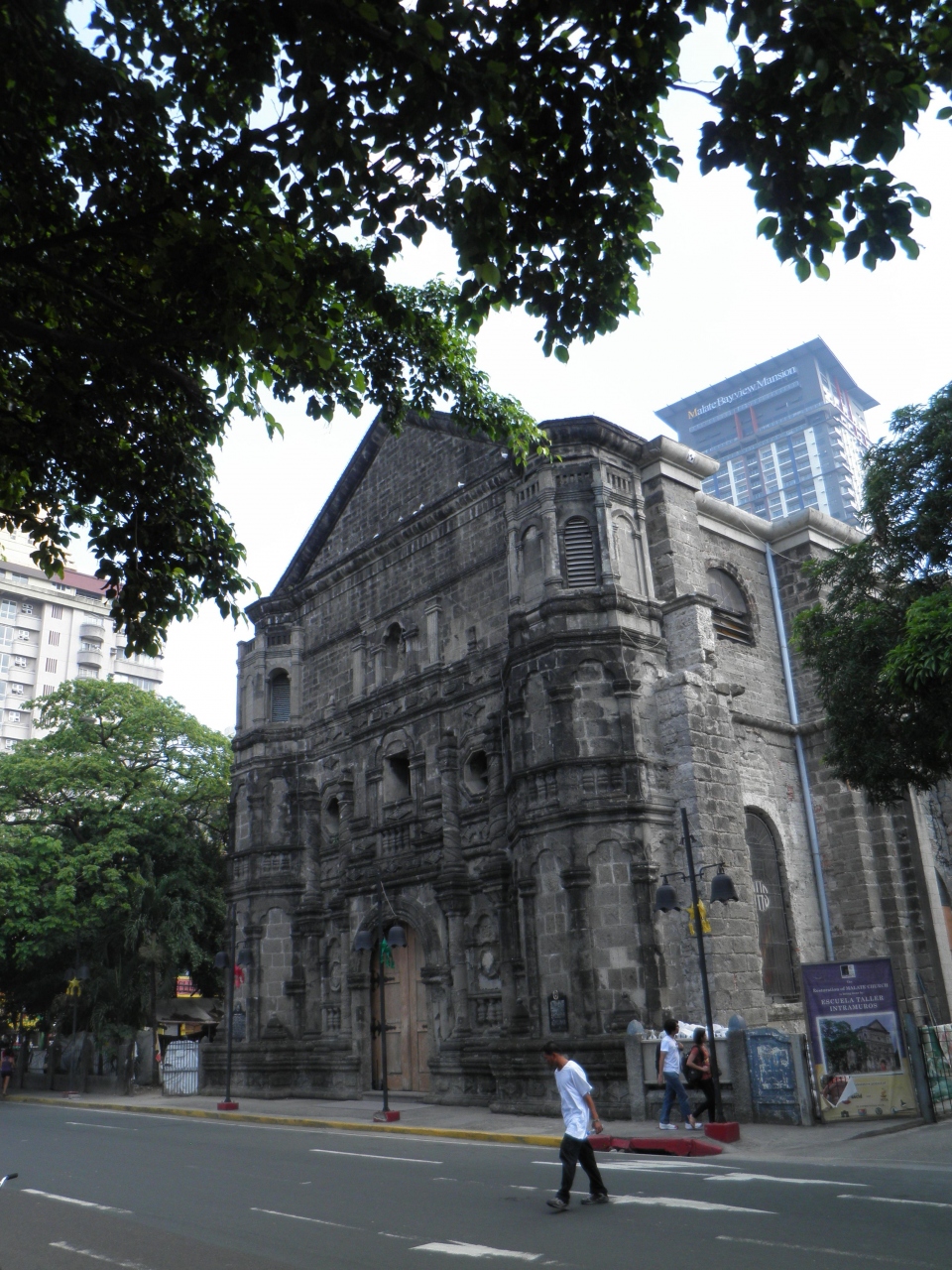 マラテの歓楽街近くにある歴史のありそうな教会です。 交通量の多い車道を介して公園があって、ここから写すと全景をとらえることができます。 中は熱心にお祈りする人々がいて厳粛な感じです。 わたしが訪れたときは接続した建物で工事が行われていましたがあまり騒音はきこえませんでした。
