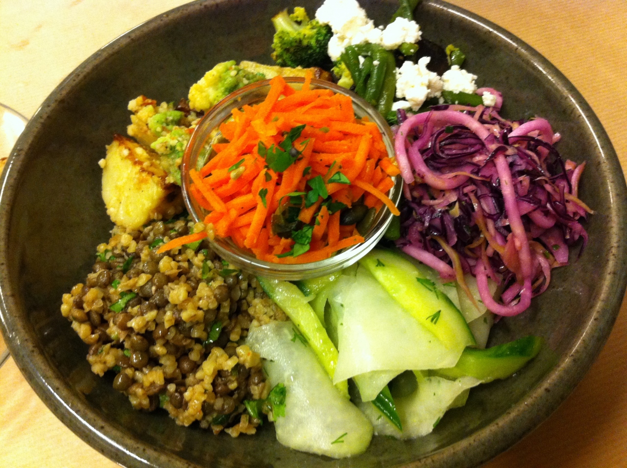 野菜プレート16ユーロをオーダーしました。パンドカンパーニュとバター付き。このパンがかのプージョラン製かどうかは未確認ですがとても美味しくて野菜の味わいと相性抜群です。