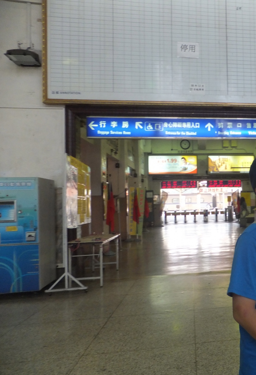 台南駅は新幹線の駅と全く違う方向にあり、こちらの方が町の中心部に位置します。台南市内をぐるっと周遊するバスのターミナルもロータリーの向かいにありますし、台北までの長距離バスの待合所も道路を隔ててすぐにあります。インフォメーションもありますが、英語もインフォメーションの方はあまりしゃべりません。欧米の人たちも身振り手振りでいきたいところを説明している感じでした。駅にコンビニがあるので足りないものはお水やパン等買いました。