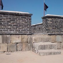 敵の攻撃を防ぐために城門の左右にある雉城の上に設けた防御施設のことをいい、長安門と八達門の両側にのみ設置されています。こちらは長安門のそばにあります。ここから見える水原の街並も素敵!生活感が溢れている街並です。また大砲も展示してありました!