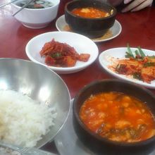スンドゥブを注文するとすぐに出てきました。おかずのキムチや天ぷらを炒めたようなものもおいしく、スンドゥブも辛うまでとても美味しかったです。ご飯は山盛りで多すぎると思いましたがスンドゥブが辛いからどんどん入ってしまい、結局完食してしまいました。お値段も安い!!また行きます。