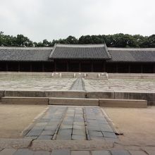 永寧殿は宗廟内、正殿の西側にあります。正殿のスペースが足りなかったため建てられた別廟。正殿に祀られなかった王と王妃、のちに廟号を与えられた王と王妃の位牌が安置されています。真ん中の太祖(李朝初代王)の4代祖を祀った4間が左右の夾室6間より高くなっているのは、階級を区別しているからだそうです。左右の夾室6間に祀られているのはあわせて34位の位牌。建物・廟庭の規模は正殿よりもかなり小さいです。正殿のあとみると‥迫力に欠けるかも。造りは正殿と同じでした。