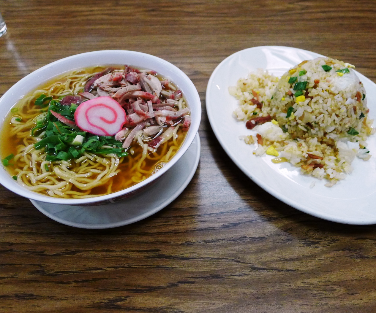 さて、たくさん書かれたメニューのなかからサイミンと、セットになった半チャーハン(!?)をオーダーし、早速頂きました。味はいい意味でとにかく素朴。ビックリするほど美味しいというものでもないですが、脂っこい肉ばかりが続くと、こういうのも食べたくなりますね。
