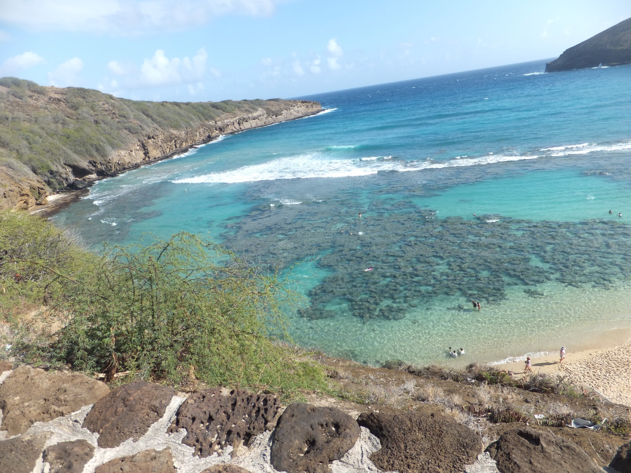 ハナウマベイ、滞在中ほぼいっていました。大きい青いクエや赤いクエが触れそうなほど接近するのが楽しくて仕方ないみたいです。一緒に泳げる水族館といった感じでしょうか。しかし昔は入場料みたいなのは取られなかったし、ハナウマベイに入る前に注意点の映画をみて再訪するひとは名前を書く、そしてスタンプも押してもらうと時の流れを感じました。