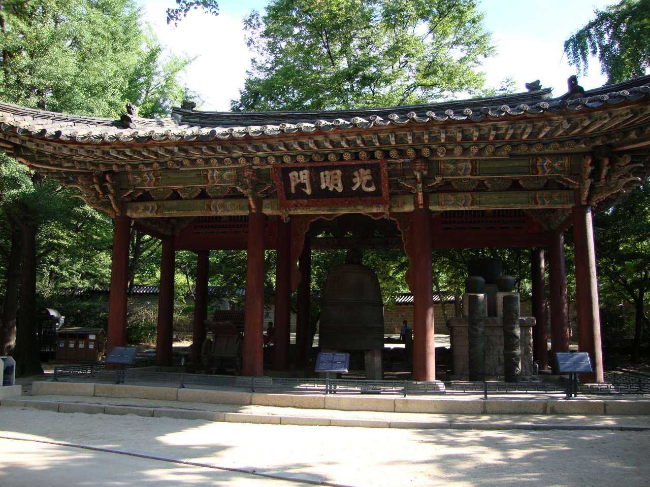 徳寿宮にある門の一つ、正門・大漢門を真っ直ぐ進んだ一番奥、石畳道への出入口にあった門。光明門と梵鐘(李朝時代時間を知らせる役割を果たした)自撃漏(流れる水の量とその落差を利た水時計)の真鍮と円筒部分が展示されていました。