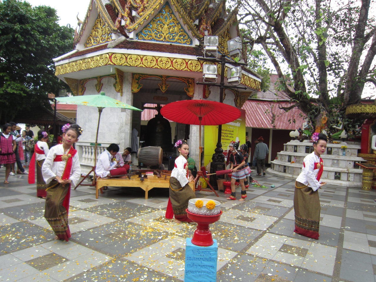 お寺では、タイ人のお子さん達が民族舞踊を踊っていました。