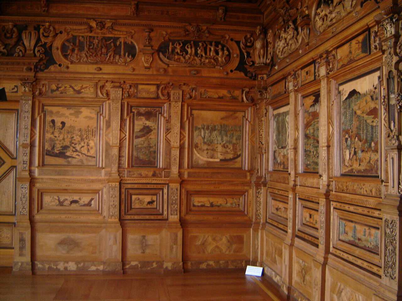 また一番の見どころは部屋の壁が見事な寄木細工で作られている「狩りの間」。