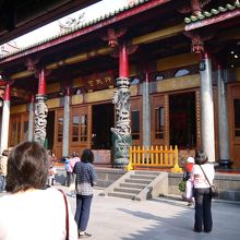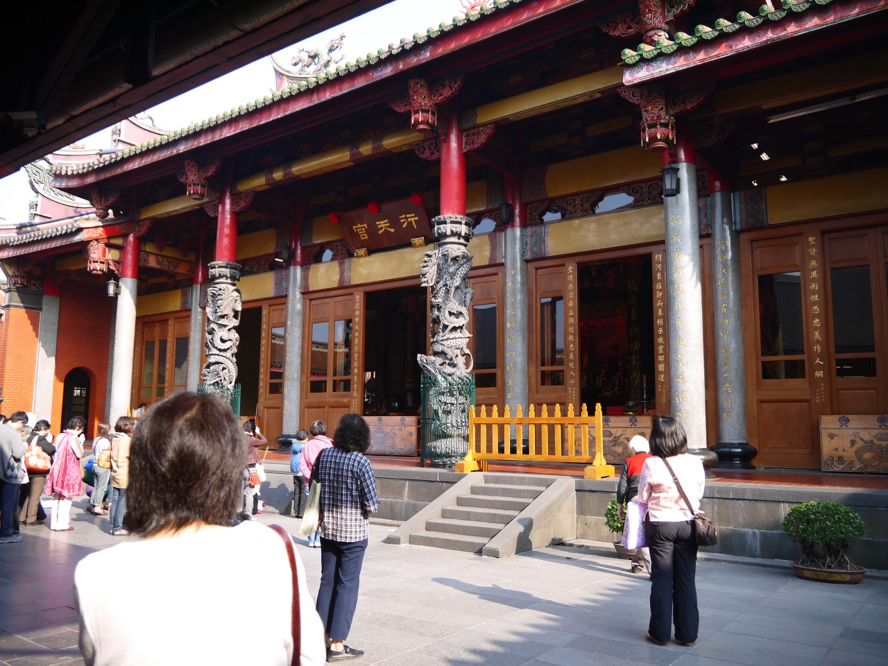 ここの神様は、三国志で有名な関羽です。関羽は、日本では勇猛な武将として有名ですが、そろばんを発明した人物ということから、台湾では商売の神様として崇められているそうです。参拝には、いくつかルールがあって(ごめんなさい。口頭だったのであまりよくは覚えてません)願い事をしてから、2組そろった占いの道具を投げて、それが表・裏となると、おみくじを引いて、占い師に解釈してもらうということだったような。裏裏、表表の場合は、表・裏がでるまで続けるらしいです。結構、地元の方で年配の方はもちろん若い方たちも熱心に参拝していました。