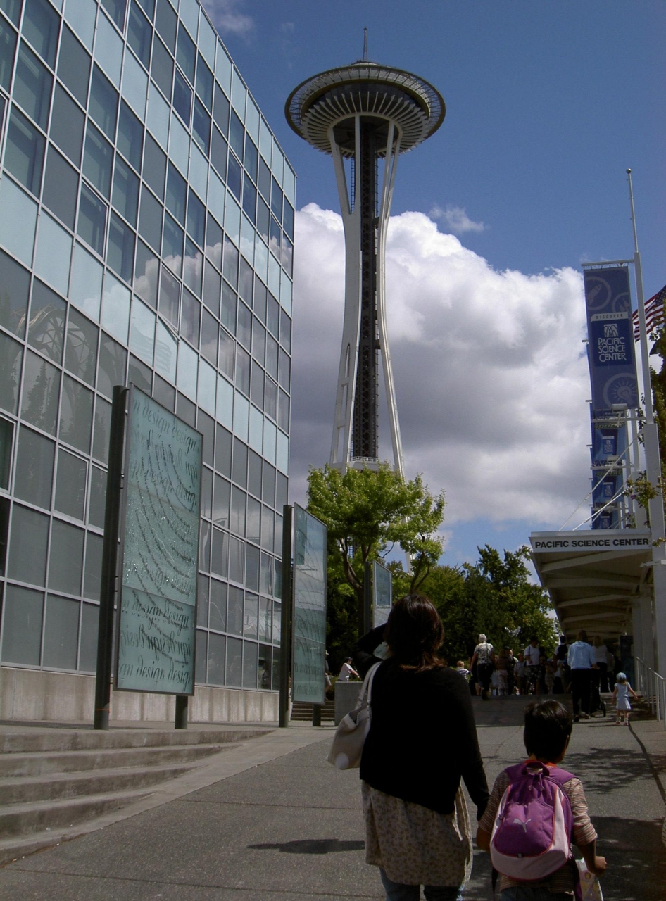 スペースニードルはガイドブックでもおなじみですが、実際に見ると不思議なタワーです。