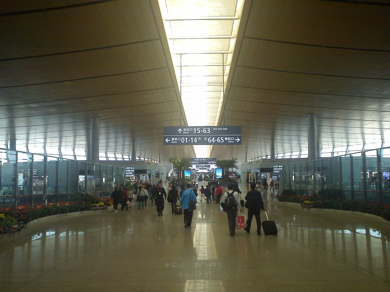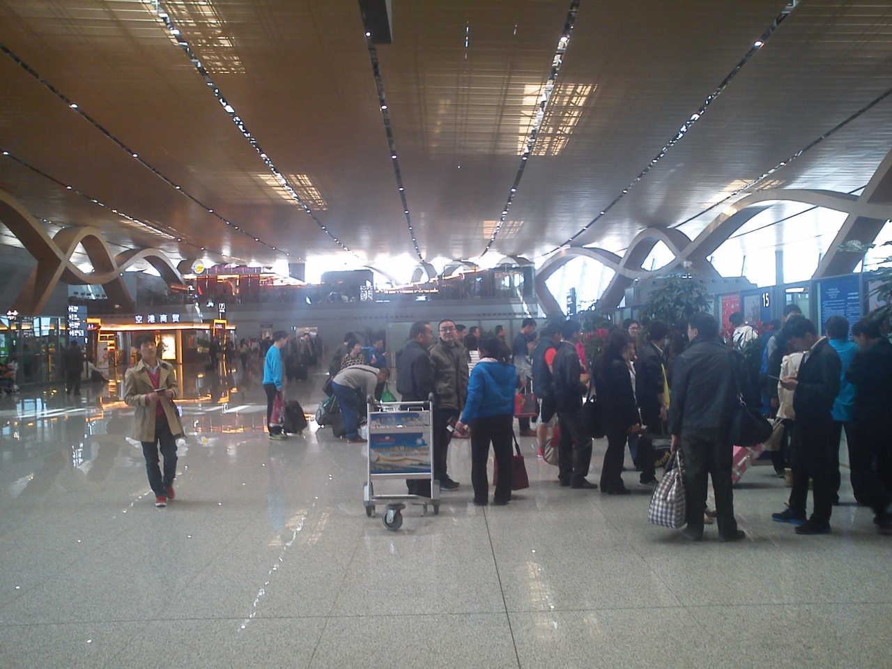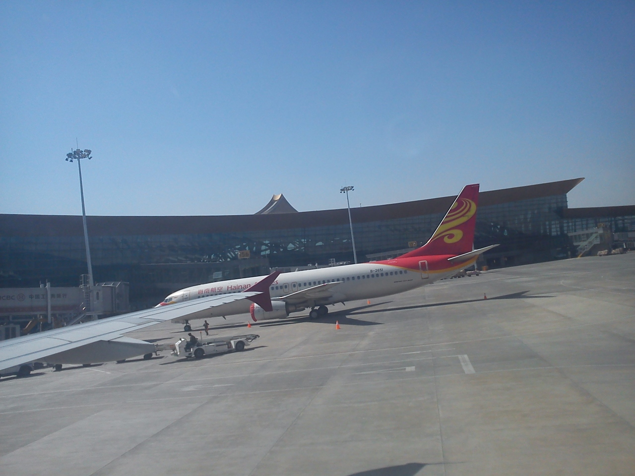 昨年できたばかりの新空港。中国4番目の大きさだそうです。ターミナルと滑走路は完成しているけど、空港敷地内の造成はまだこれからといったところ。新しいのはいいんだけど、とにかくでかくて。。。大きさは4番目でも、利用客はそんなに上位じゃないと思うので、こんなに大きい必要あるのかな?