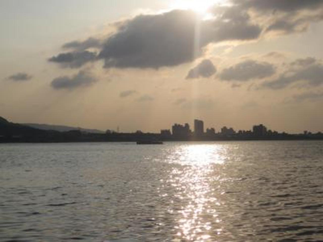 終点、淡水駅からも景色がよく、駅のすぐ前が芝生の公園。