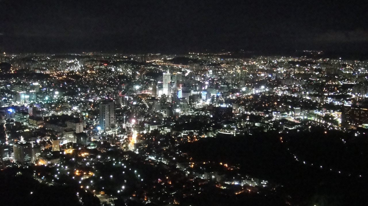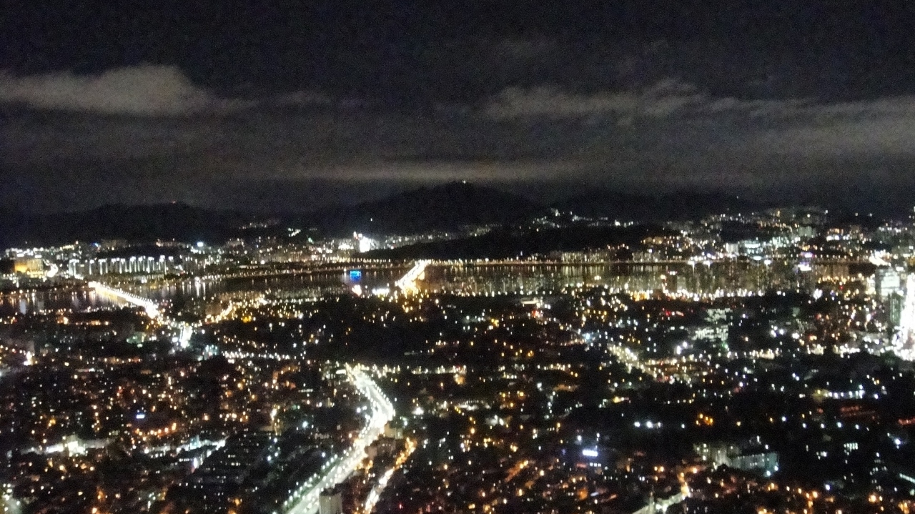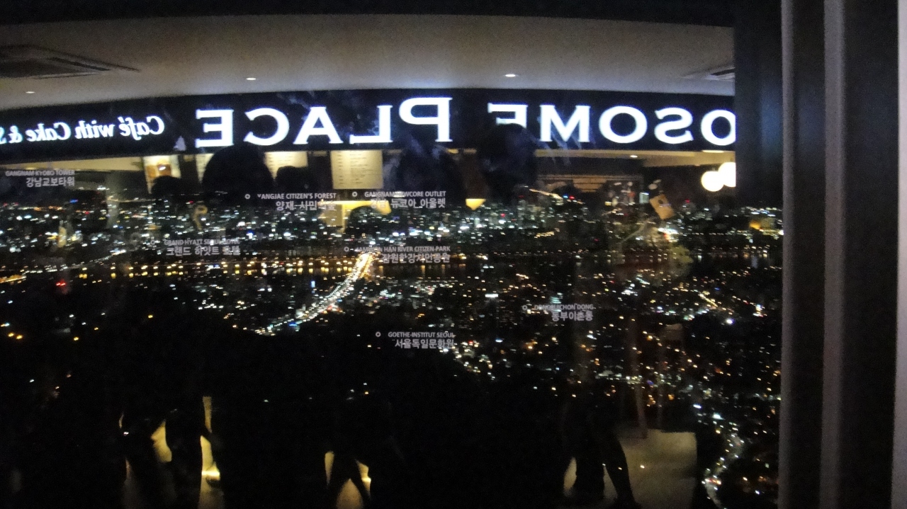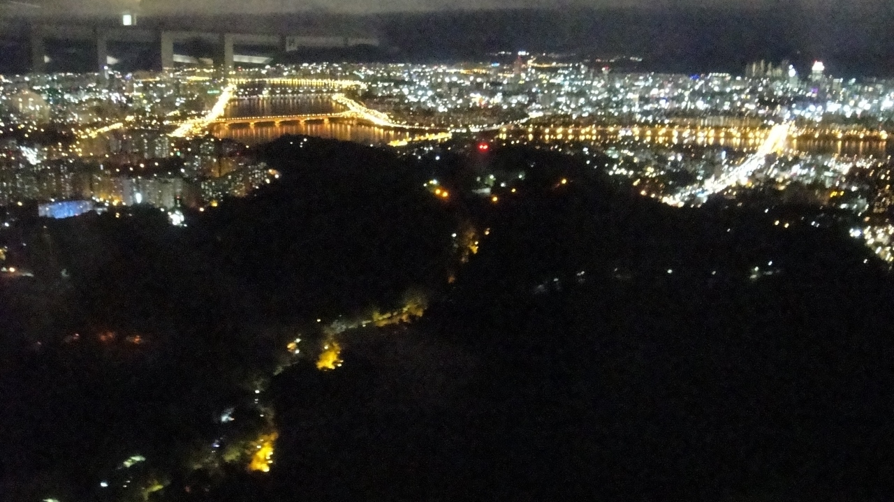 人混みは凄かったですが、タワーの上では360度宝石のようなきれいな夜景を見ることができます。南側は特にきれいでした。漢江にかかる橋が輝いていました。ソウルに来たら必ずお立ち寄りください。